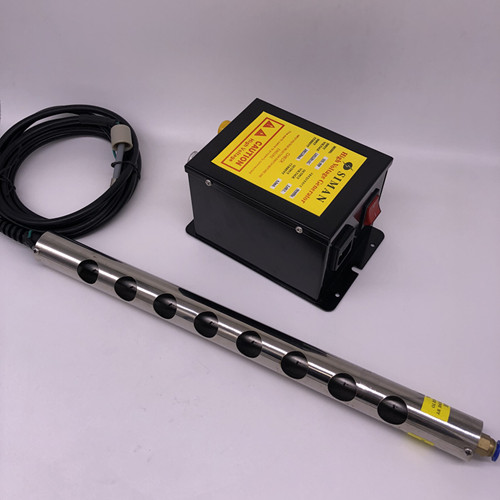 产品介绍 TS-006离子棒是一种排针设计形式,不需要压缩空气,其设计特别适合于薄片料加工、分切、卷料等平面场合消除静电。作用距离为10mm-200MM,长度可以根据客户的要求订做,需配用Ints-008高压电源供应器才可以使用. 技术参数 Operating Voltage(工作电压) 5.6KV Current Consumption(消耗电流) 230uA/M Operating Temperature(操作温度范围) 0-50℃ Weight(重量) 1.6kg HV cable length(高压电缆长度) 3Meters Max.length(最大长度) 可订做 测试结果 Decay Test Conditions (测试条件) Operating Voltage (操作电压):5.6kv Testing Voltage(测试电压):5.0KV to 500V Temperature(环境温度):20℃ Distance(距离) 30mm 90mm 150mm Decay time(中和时间) Positive(正) 0.4s 0.6s 0.9s Nefative(负) 0.4s 0.6s 0.9s Offset voltage (残余电压) Positive(正) -25V -24V +18V Nefative(负) -30V -25V +12V 使用方法 除静电棒需配电源供应器一起使用,将除静电棒连接线末端插入电源供应器输出插孔,然后将电源供应器的插头插入带有接地线的插座上(注意电源供应器的使用电压),将除静电棒固定安装到合适的位置。 需要压缩空气的除静电棒打开电源供应器电源后,需要接上压缩空气才可使用。开机后,对着需要除静电的地方吹,就可以除静电除灰尘了。