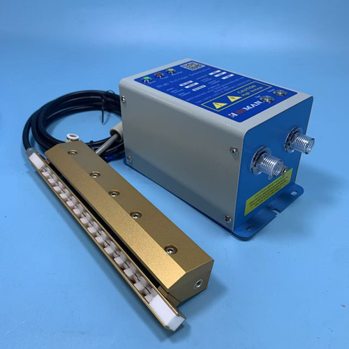 产品型号:TS-5018T 名称: 离子风刀 产品介绍: TS-5018T离子风刀是一根离子棒透过高速气泵,将离子直接吹至目标表面.它的风量能快速消除静电和灰尘。广泛用于电子行业、LED光电、半导体、小零件加工、医药制造、印刷、包装、塑胶喷涂,薄片料加工、分切、卷料等平面场合消除静电。长度可以订做,需配用TS-009高压电源供应器才可以使用(需另外购买)。 技术参数: Operating Voltage(工作电压) 7.0KV Current Consumption(消耗电流) 0.6mA Operating Temperature(操作温度范围) 0-50℃ HV cable length(高压电缆长度) 3Meters Max.length(最大长度) 2.5M(可订做) Relative Humidity(操作相对湿度) ≤60%RH 测试结果 Distance(距离) Decay time(中和时间) 100mm 0.3s 200mm 0.65s 300mm 1.1s 600mm 2.35s 900mm 5.4s Testing Voltage(测试电压):5KV to 500V 使用方法 除静电棒需配电源供应器一起使用,将除静电棒连接线末端插入电源供应器输出插孔,然后将电源供应器的插头插入带有接地线的插座上(注意电源供应器的使用电压),将除静电棒固定安装到合适的位置。 需要加入压缩空气, TS-5018T除静电棒打开电源供应器电源后,需要接上压缩空气才可使用。开机后,对着需要除静电的地方吹,就可以除静电除灰尘了。 保修服务 本公司严格遵守:客户至上的宗旨,对除静电棒实行以下承诺 1.保用期 凡本公司出售的除静电棒保用期为一年,自出售日起一年内因产品自身机件、材料及工艺问题造成的质量问题,本公司免费修理。 2.保用期后 凡本公司出售的除静电棒保用期过后仍负责对产品的免人工费修理,以保证客户的利益。