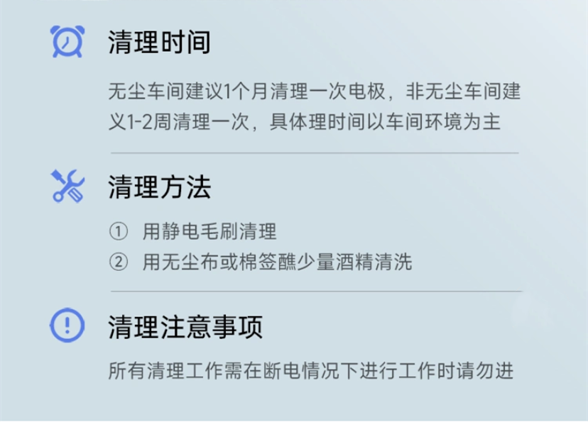 Distance(距离) Decay time(中和时间) 50mm +0.3s -0.3s 100mm +0.5s -0.5s 120mm +0.6s -0.6s Testing Voltage(测试电压):5KV to 500V